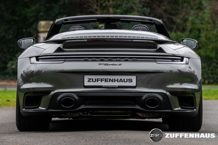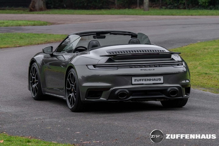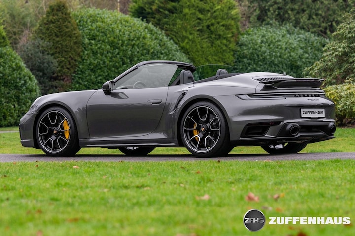De alleskunner pur sang....De 911 Turbo S. Sinds zijn ontstaan, is de Turbo het toppunt van comfort, luxe en snelheid. En snel dat is ie, ongekend snel zelfs, met zijn 650 pk maar liefst. Het meest bijzondere is nog dat je het niet merkt, als je je in alle rust door het verkeer heen wurmt. Maar heb je vrij baan en een fantastische bocht, ontpopt hij zich als de allerbeste reisgezel. Een bizarre verschijning. Ook nog eens heel bijzonder om hem dan juist in een Cabrioletvorm te rijden, in deze Aventuringroene metallic kleur, met zwart lederen interieur, zilver stiksel en een zwarte kap. Echt prachtig wordt het namelijk als je de snelweg af gaat, mooi binnendoor heerlijk sturen met altijd een gigantisch koppel. De 911 Turbo Exclusive velgen in Zwart gespoten maken het geheel af, te samen met de Zwart gespoten accenten. Echt een heel indrukwekkende Porsche. Zijn prijs is dat inmiddels ook. Mocht je een 992 Turbo S Cabriolet willen bestellen anno nu, betaal je voor deze Porsche bijna 400.000 euro euro. Deze, origineel NL geleverde Porsche 992 is uiteraard schadevrij en voorzien van veel, héél véél fraaie opties. Met nét 10.000 km bovendien nog als nieuw, mede dankzij de Paint Protection Film die de voorzijde beschermd tegen steenslag. Daarnaast onlangs voorzien van onderhoudsbeurt bij Porsche, inclusief Porsche Approved garantie tot 21.10.2027!