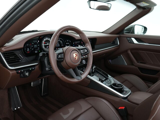 Porsche 911 Turbo S Cabriolet in Aventurine Green (PTS), gecombineerd met een donkerbruin lederen interieur. Een schitterende en zeldzame samenstelling die deze Turbo S meteen onderscheidt van de rest. De auto is afkomstig van de eerste eigenaar en heeft slechts 15.362 kilometer gereden en verkeert in uitzonderlijke conditie.
