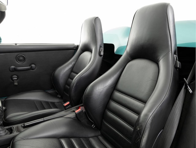 Interieur: Gedeeltelijk lederen interieur in zwart, lederen stoelen in zwart, Stof