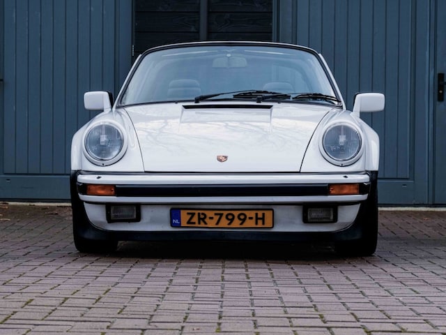 Te koop aangeboden: Porsche 911 3.2 Carrera Targa uit 1984, uitgevoerd in Grandprix Weiss – de originele kleur waarin de auto volledig opnieuw is gespoten (foto's aanwezig). De auto is omgebouwd naar WTL look met originele stalen turbo schermen, waardoor hij de brede en krachtige uitstraling heeft die bij de Porsche 911 WTL hoort.