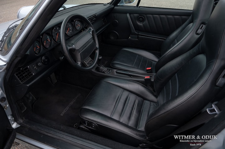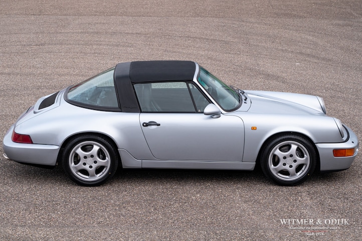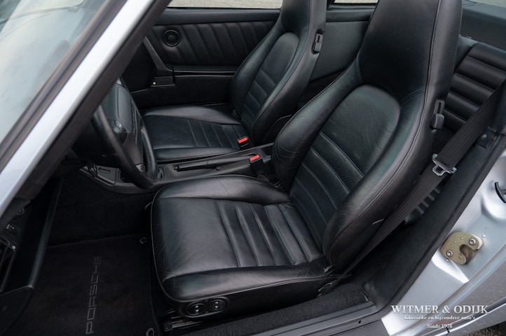 aantallen maakt dat de 964 Targa een zeer gezochte liefhebbers auto. Ook gezien de 'Made in Germany' bouwkwaliteit zeer terecht, goed functionerende 964's met kilometerstanden van tien keer de wereld rond zijn geen uitzondering. Mits goed onderhouden natuurlijk. Dit oorspronkelijk in België geleverde exemplaar kwam al in 2006 naar Nederland. Geimporteerd door Porsche in Leusden, van 1992 tot zeer recent perfect onderhouden door Porsche dealers en specialisten. Bij de auto is een lijvig dossier met facturen die weergeven dat het hier een bovengemiddeld verzorgd exemplaar betreft. Recent nog werden bijvoorbeeld nieuwe Bilstein schokdempers geplaatst, banden rondom vervangen en de uitlaat compleet vernieuwd. In 2025 werd om cosmetische redenen de (schadevrije) carrosserie gerestaureerd en het Targadak nieuw bekleed. Zo is deze Targa ook optisch in topconditie. Alles wat onderhoud technisch aan de beurt kan komen is de afgelopen jaren al eens aangepakt door de, bij ons bekende, laatste eigenaar. Van de remmen tot de gasdempers van de kofferklep, van de draagarmbussen tot de isolatie in de motorruimte, kosten noch moeite werden gespaard om de auto in topconditie te houden. Vanzelfsprekend rijdt ze nu ook zo. Optioneel voorzien van climat control, elektrische stoelhoogte verstelling, airbag's, Becker Traffic Pro radio/cd met afneembaar front, zwart leer, elektrische ramen, etc. Alle originele boekjes met afgestempelde onderhoudsbeurten, taxatierapporten en facturen zijn aanwezig. Wordt afgeleverd inclusief nieuwe APK, garantie en onderhoudsbeurt.