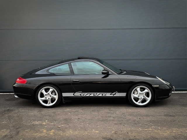 Stap in een wereld van pure Porsche-passie en tijdloze prestaties met deze Bomvolle Porsche 911 (996) Carrera 4 uit 2000, uitgevoerd in het stijlvolle Schwarz Metallic.