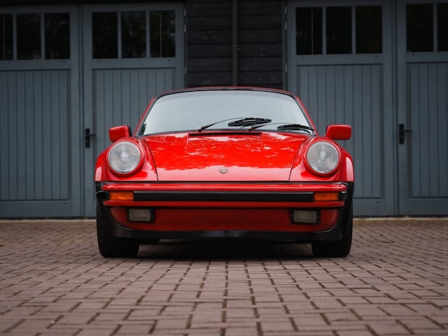 Te koop aangeboden: een Porsche 930 Turbo uit 1986, uitgevoerd in Indischrood met een 2-deurs coupé carrosserie en handgeschakelde versnellingsbak.