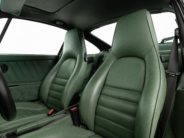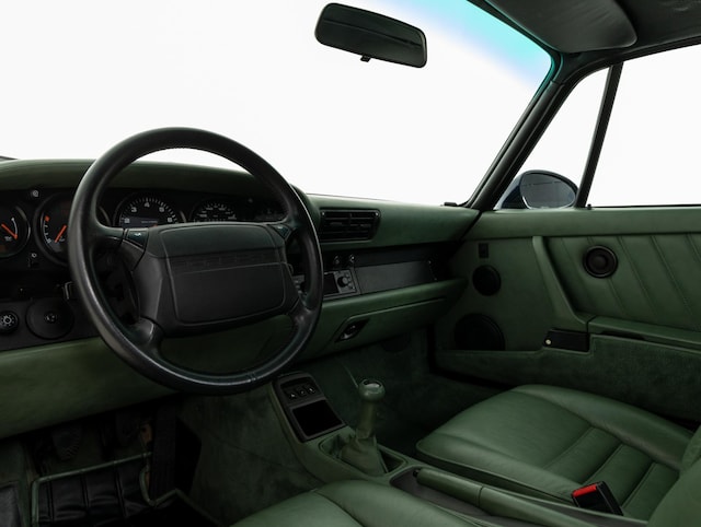 Maar wat deze 964 echt zeldzaam maakt, is de combinatie met het Sherwood groene lederen interieur. Een echte speciale bestelling uit die periode. Een prachtige combinatie.