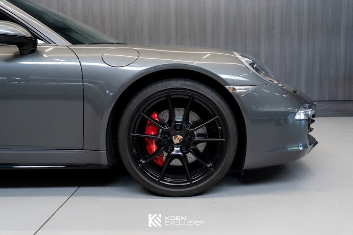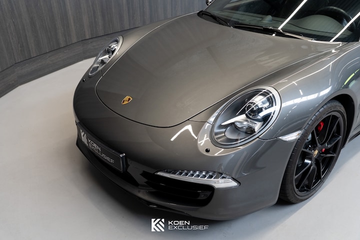 Erg fraaie en origineel Nederlands geleverde Porsche 911 3.8 Carrera 4S (991.1) uit 2013, uitgevoerd in agaatgrijs metallic met een volledig zwart lederen interieur. De auto heeft een lage kilometerstand van 71.424 km en verkeert in zeer verzorgde staat. Naast de fabrieksopties is de auto optisch verfijnd met hoogglans zwart gespoten dorpels, spiegelvoeten en uitlaateindstukken. Daarnaast professioneel getinte achterramen en achterruit. In combinatie met de agaatgrijze lak en het zwarte lederen interieur ontstaat een stijlvolle en sportieve uitstraling.