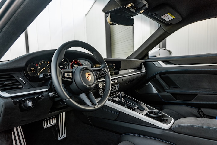 In het interieur onderstreept de 911 Dakar zijn sportieve ambities met standaard kuipstoelen en het weglaten van de achterzittingen. Lichter glas en een lichtgewicht accu zorgen voor een verdere beperking van het gewicht, zodat de Porsche 911 Dakar maar tien kilo zwaarder is dan een 911 Carrera 4 GTS met PDK. Een duidelijk onderscheidend kenmerk in het Dakar-interieur is de standaard Racetex-uitrusting.