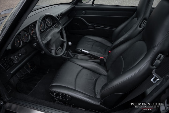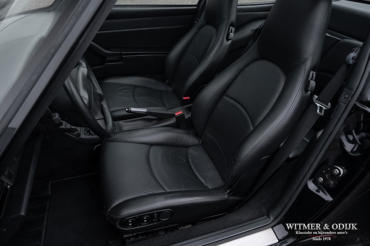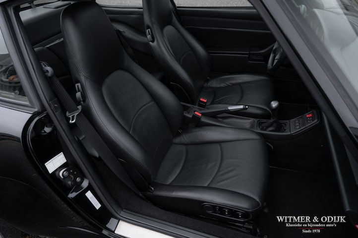 Een van de zeldzaamste Porsche's uit het laat-luchtgekoelde tijdperk is de Carrera S. In de ruim bemeten jas van de 993 Turbo is de Carrera S een lust voor het oog. Vooral de sexy achterzijde van dit fraaie model doet de liefhebber watertanden. Optisch onderscheidt de Carrera S zich het duidelijkst van de 'normale' 993 en ook de 4S door het in twee delen gesplitste rooster in de elektrisch uitklappende achterspoiler. De carrosserie en voor- en achterbumper zijn gelijk aan die van de Turbo. Zonder die vaste vleugel, waarmee u een echtscheiding of 'voortaan strikt alleen op pad' riskeert. De Carrera S werd slechts 3500 keer gebouwd en daarom ziet u ze niet vaak te koop staan. Meestal zijn het dan automatische Tiptronic versies, dit exemplaar is een van 1200 gebouwde 2S versies met de zeldzame handgeschakelde zes-bak. En zeldzaamheid is dé voorwaarde om het kopen van een Porsche ook een verantwoorde investering te laten zijn. De Porsche in kwestie moet dan ook wel een hele échte zijn, waarvan hier akte. Deze 993 Carrera S werd nieuw verkocht in Duitsland. Ze is volledig origineel en schadevrij. Altijd in handen geweest van liefhebbers die louter officiele dealers of bekende specialisten aan de auto lieten werken. Er is een lijvig en compleet dossier bij de auto aanwezig. Boekjes, rekeningen, sleutels, etc. alles compleet en origineel voorhanden. Compleet uitgevoerd met o.a. elektrisch schuifdak, automatische climat control, elektrisch verstelbare stoelen, derde ruitenwisser, centrale deurvergrendeling met afstandsbediening, boordcomputer, stoelverwarming, originele CD 21 Porsche radio/cd speler, etc.