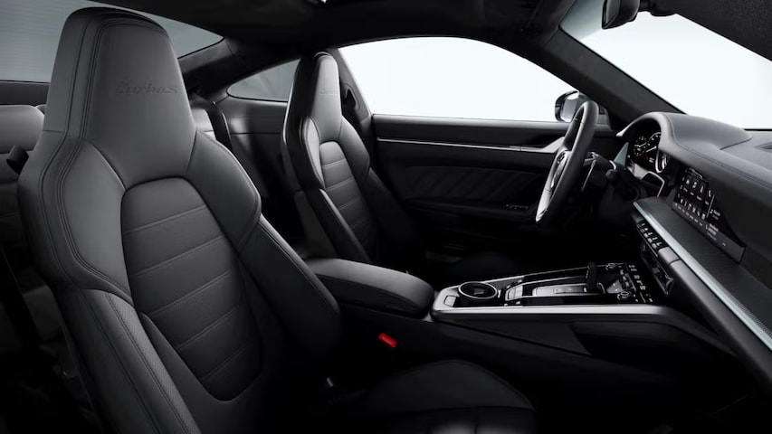 Hoofdsteunen met 'turbo S' logo en rugleuningen met doorgestikte middenbaan