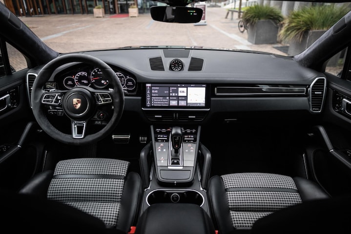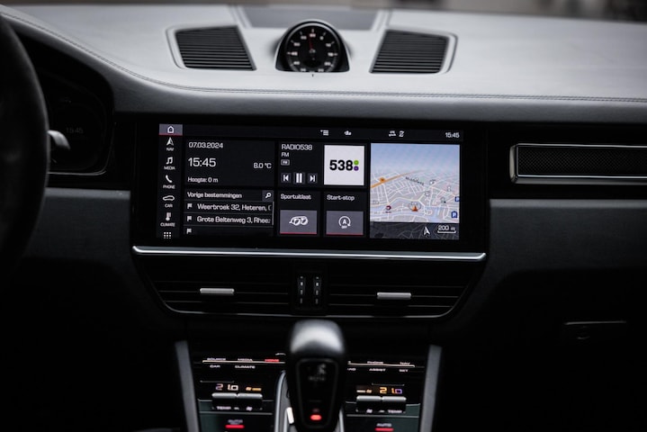Het fraaie design van de hoge middenconsole met spiegelgladde hoogglans zwarte bedieningspanelen en het brede centrale touchscreen werkt intuïtief en prettig en biedt alle luxe waaronder stoelverwarming voor en achter, demper instellingen en een waanzinnig multimediasysteem. Dit laatste is uitgerust met het allerbeste op audiogebied. Het Burmester High End audiosysteem klinkt fenomenaal en is prachtig afgewerkt met RVS speakercovers. De cockpit, met zoals het Porsche betaamt, de analoge toerenteller precies in het midden wordt omgeven door twee LED schermen aan weerzijden die naar wens zijn in te richten en je werkelijk iedere info geven die je wenst. Er is adaptieve cruise control, LED Matrix koplampen met PDLS Plus, parkeersysteem met camera en heel praktisch is de elektrische trekhaak.