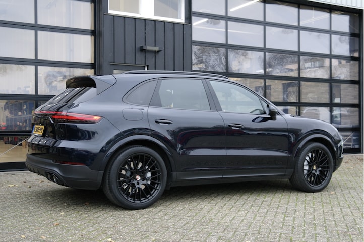Frisse Porsche Cayenne 3.0 340 PK in de kleur Moonlight Blue Metallic. Onderscheidende opties: 360 graden camera, Apple-Carplay, nappa lederen bekleding, night vision, 21'' RS Spider velgen, panoramadak, Bose soundsystem, lederen dashboard, stoelventilatie voor, stoelverwarming voor en achter,