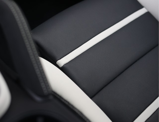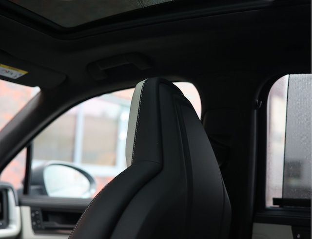 Het exterieur is prachtig, maar het is het interieur dat de show steelt. Hier is gekozen voor een waanzinnige two-tone uitvoering in Krijt en zwart. De 18-voudig verstelbare adaptieve sportstoelen zijn prachtig bekleed met zwart lederen middenstuk met Krijt lederen details. Ieder oppervlak is afgewerkt op het hoogste niveau, met een lederen dashboard, middenconsole en deurpanelen. Stuk voor stuk versierd met contrasterende stiksels in Krijt. Het stuurwiel, de binnenhemel en zelfs de handgrepen zijn bekleed met Race-Tex en eveneens voorzien van Krijt stiksels. Aan alle details is gedacht!