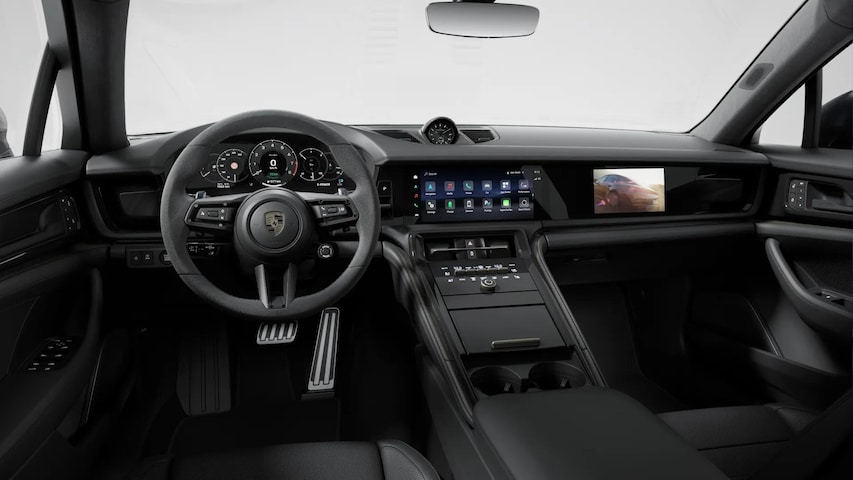 Het exterieur wordt verfraaid door 21-inch Panamera Turbo S wielen (C9J), het SportDesign pakket carbon (2D3) en het Sportuitlaatsysteem zwart (0P9). Binnenin treft u onder meer het interieurpakket carbon mat Neodyme (7TS), dorpellijsten carbon met verlichting (7M8) en het GT-sportstuurwiel alcantara met carbon inleg (1XR).