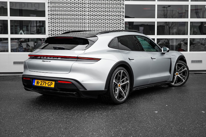 De Porsche Taycan Cross Turismo vertegenwoordigt de nieuwe generatie auto's en verenigt elektrische kwaliteit en duurzaamheid met elkaar. De fluisterstille elektromotor zorgt voor pittige rijprestaties zonder uitstoot. Maar wel met fiscaal voordeel! Een krachtige motor geeft deze auto zijn sportieve prestaties. Niks mis met gewone stalen vering natuurlijk, maar de luchtvering in deze auto geeft toch wel een paar onderscheidende extra's als het gaat om veiligheid, gemak en wegligging. Maximaal comfort en stijl krijgt u dankzij het lederen interieur. Een handige voorziening op deze auto is de elektrische achterklep die u op afstand kunt openen. Tot de uitrusting van deze Porsche behoren ook elektrisch verstelbare voorstoelen, 19 inch lichtmetalen velgen, LED koplampen, adaptief dempingsysteem en verstelbare lendensteunen. Praktisch, helder en uitermate handig is het digitale dashboard. Alle functies haarscherp in beeld! Een veiligheidsverhogende optie is de ingebouwde spraakbediening. Terwijl u uw ogen op de weg houdt, bedient u de auto met uw stem. Van A naar B zonder omwegen: altijd uw eigen full map navigatiesysteem aan boord! U verwacht natuurlijk electronic climate control in deze auto, en die is er dan ook. Geniet van een ruime selectie digitale radiostations met de DAB-ontvanger. De uitrusting van deze auto is met parkeersensoren achter, regensensor, cruise control en sportstuurwiel behoorlijk compleet. Zoals u mag verwachten van deze Porsche Taycan Cross Turismo is hij uitgerust met een reeks aan actieve veiligheidssystemen. Verkeersborddetectie herkent tijdelijke en permanente verkeersborden langs en boven de weg. Op een kop-staartbotsing zit niemand te wachten. Daarom is de forward collision warning onderweg constant alert en berekent via een sensor de veilige afstand tot voorliggers. In deze Porsche vinden we verder een hill hold functie, frontale botsbescherming en bandenspanningcontrolesysteem. Neem contact op voor een proefrit en ervaar de power van elektrisch rijden.
