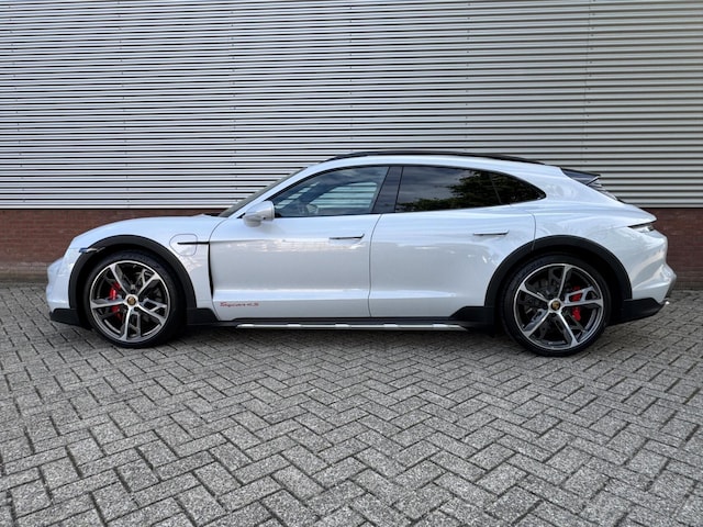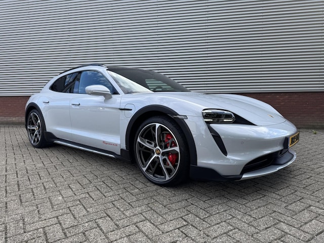 Prachtig uitgevoerde IJsgrijze metallic Porsche Taycan Cross Turismo 4S 93 kwh met 572 pk vermogen.