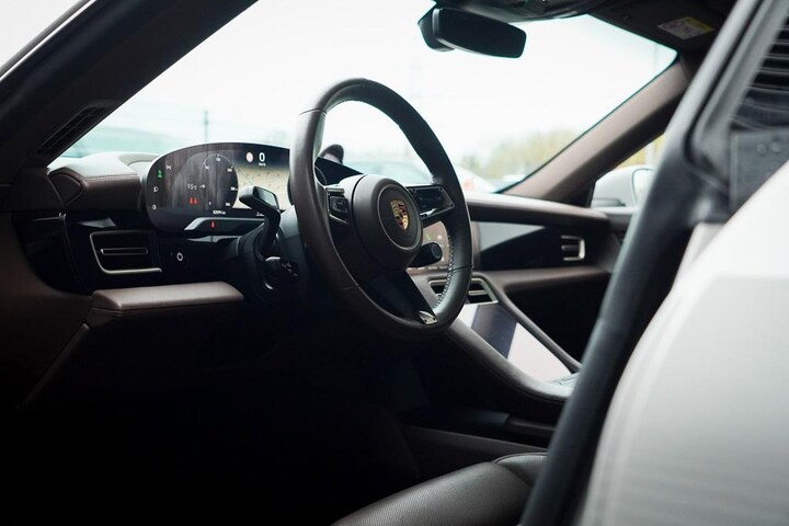 Porsche Taycan - 79 kWh / Krijt / Pano / Stoelverwarming + Koeling / Warmtepomp / Luchtvering