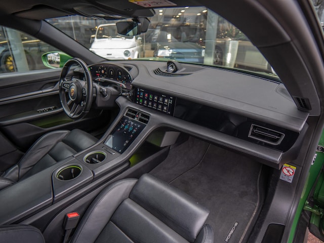 Deze Porsche Taycan Performance in het opvallende mambagroen is een echte blikvanger. De unieke kleur benadrukt het strakke, futuristische design van de Taycan en geeft de auto een exclusieve uitstraling. Deze auto is door ons ingekocht via ons vaste inkoopkanaal. Hij is rijk uitgerust met opties en verkeert zowel technisch als cosmetisch in topconditie. Het interieur biedt hoogwaardige materialen, moderne Porsche-technologie en een luxe, stille rijervaring. Dankzij de elektrische aandrijving accelereert de Taycan krachtig en volledig soepel, met het directe karakter dat zo kenmerkend is voor deze elektrische Porsche.