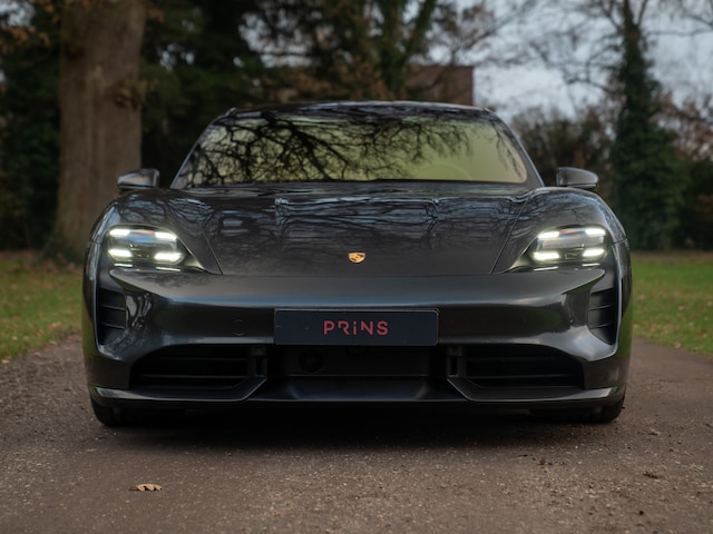Het lijkt Porsche’s missie te zijn geworden om elektrisch rijden spannend te maken. Deze heerlijke Taycan Turbo S op 21 inch grote Mission E Design velgen is daarvan het rijdende bewijs. Met 761 pk en 1.050 Nm koppel (!) aan boord maakt de EV alvast een verpletterende indruk als het om prestaties gaat: 0 naar 100 km/h in 2,8 seconden… Welke hypercar met benzinemotor doet ‘m dat na? Zo ingetogen als het Vulkaangrijs metallic lakwerk aandoet, zo explosief is de snelheidsopbouw. En dan te weten dat de Porsche Taycan nog tamelijk functioneel is ook: met 4 portieren en 5 zitplaatsen hoeft u niet te kiezen welk gezinslid er meegaat om een F1-achtige acceleratie te ervaren. Het motorgeluid schittert door afwezigheid, maar het Burmester 3D High-End Surround Sound systeem weet dit op oorstrelende manier te compenseren. Andere hoogwaardige extra’s treft u in de vorm van een panoramadak, achterasbesturing, luchtvering, Surround View Camera, stoelverwarming, stuurverwarming, Matrix LED-koplampen en een Licht Design pakket. Het Basalt Clubleder op stoelen, midden-/tunnelconsole, portieren en onderzijde dashboard is origineel en smaakvol tegelijkertijd. Het spannendste zijn echter de opties die het adrenalineniveau door het dak laten gaan: zowel het SportDesign exterieurpakket als het GT Sportstuur bevat carbon elementen. Kortom, helemaal hightech en puur op performance gericht. Net als Porsche Dynamic Chassis Control Sport (PDCC Sport) en Porsche Ceramic Composite Brake (PCCB) om al dit technische geweld weer veilig en stabiel tot stilstand te kunnen brengen. Nee, dit is geen Porsche zoals we Porsche kennen. Aan de andere kant: hij doet zijn naam Turbo S zonder twijfel eer aan.