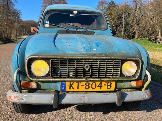 Schuurfondst? Nee hoor gewoon een tijdje niet wassen. Deze Renault 4F4 heeft nog bijna een jaar APK. Binnenkort is die niet meer APK plichtig. Het F4 tje is technisch hellemaal in orde, 4 nieuwe banden, remmen rondom vernieuwd, remdrukbegrenzer verv. en recent een grote beurt gehad. aan de onderkant is alleen de bodemplaat links voor gelast. de rest van de bodem is goed. Deze 4F4 is echt iets voor iemand die het uiterlijk niet zo belangrijk vindt maar wel een technisch goed viertje zoekt. Het is altijd mogelijk om de auto op de brug te bekijken en een proefrit kan natuurlijk ook want hij rijdt heerlijk. Bel even voordat je langs wilt komen. 026-3343049