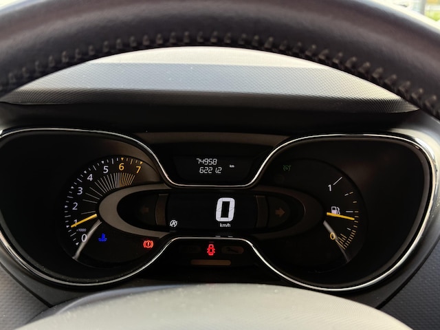Hoeveel ruimte heeft u nog bij het inparkeren? De achteruitrijcamera brengt helder in beeld wat zich achter de auto bevindt en geeft een geluidssignaal. U verwacht natuurlijk automatische airconditioning in deze auto, en die is er dan ook. Het hoort bij een intelligente auto als deze dat hij zelf in staat is om zijn omgeving in de gaten te houden. Dat doet deze Renault met een automatisch inschakelbare verlichting en een regensensor. De cruise control zorgt voor zorgeloos, ontspannen en zuinig rijgedrag. Dankzij de keyless entry nooit meer graven in uw zakken of tassen op zoek naar de autosleutel. Uw auto herkent u en zet de deuren open! De uitrusting van deze auto is met navigatiesysteem en lederen stuur en versnellingspook behoorlijk compleet.