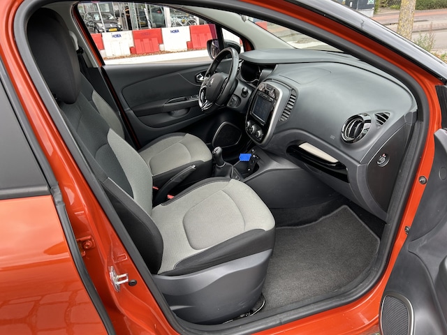 Het full map navigatiesysteem brengt u soepel en vlot naar uw bestemming. Andere zender, andere muziek, meer volume? Met de audiobediening op het stuur is het makkelijk en veilig geregeld. Nooit meer last van een slapende rechtervoet dankzij de uitgekiende cruise control! Geen capriolen meer als u met armen vol de auto moet openen. De keyless entry heeft u al herkend en ontgrendelt de Renault Captur automatisch. Het maakt niet uit hoe warm het buiten is, want met de airconditioning bepaalt u zelf de binnentemperatuur. En dan is deze auto ook nog eens voorzien van buitentemperatuurmeter, isofix-aansluiting, usb-aansluiting, centrale deurvergrendeling met afstandsbediening, bagage afdekhoes en bekerhouder.