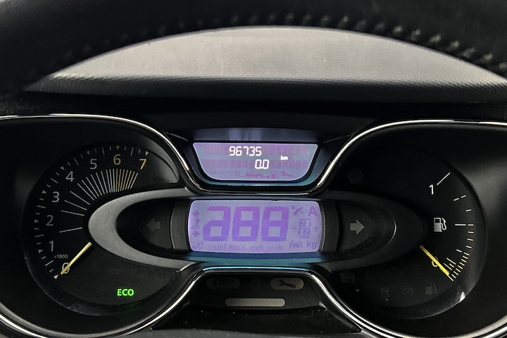 Nooit meer parkeerschade dankzij de achteruitrijcamera. Het navigatiesysteem is uw vertrouwde gids, waarheen de reis ook gaat. Dankzij automatische airconditioning is het interieur behaaglijk warm of verfrissend koel. Een andere zender zoeken of het volume wijzigen? Het audiosysteem heeft bediening op het stuur. Het luxeniveau in deze Renault is niet alleen gericht op comfort, maar ook op uw veiligheid. Tal van sensoren helpen u om de omgeving in de gaten te houden. De automatisch inschakelbare verlichting zorgt dat automatisch de verlichting wordt ingeschakeld als het donker wordt, wat bijvoorbeeld in tunnels erg handig is. En de regensensor zet de ruitenwissers aan zonder dat u eraan hoeft te denken. De uitrusting van deze auto is met cruise control, keyless entry, lederen stuur, isofix-aansluiting, centrale portiervergrendeling en boordcomputer behoorlijk compleet.
