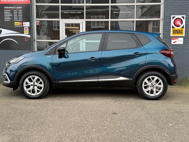 Maak kennis met deze stijlvolle en rijk uitgeruste Renault Captur 0.9 TCe Limited uit december 2019. Een SUV die comfort en moderne technologie combineert met een sportief design. De heldere blauwe metallic lak, speciale dakafwerking en 16” lichtmetalen velgen geven de Captur een dynamische uitstraling die je niet onopgemerkt laat rijden.