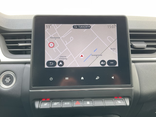 Ook achter de auto geen verrassingen bij het inparkeren. Daarvoor zorgt de achteruitrijcamera. De speciale app verbindt met Connected Services, die de status van vitale functies bijhoudt en waarschuwt als u bijvoorbeeld moet tanken, de bandenspanning moet controleren of olie moet bijvullen. Het navigatiesysteem brengt u vlot naar uw bestemming, terwijl u luistert naar het glasheldere geluid van het audiosysteem met DAB-radio. U verwacht natuurlijk electronic climate control in deze auto, en die is er dan ook. Het drukke verkeer eist onderweg al uw aandacht op. Daarom is het goed dat deze Renault is voorzien van diverse systemen die u assisteren tijdens de rit. Een automatisch inschakelbare verlichting neemt het waar als het donker wordt of gaat schemeren, en schakelt dan automatisch de verlichting in. Op dezelfde manier "ziet" de regensensor de eerste spatjes regen en schakelt dan de ruitenwissers in, en als het harder gaat regenen zet hij de ruitenwissers ook in een snellere stand. De uitrusting van deze auto is met cruise control, keyless entry, automatisch dimmende binnenspiegel, boordcomputer, verstelbaar stuur en lederen versnellingspook behoorlijk compleet.