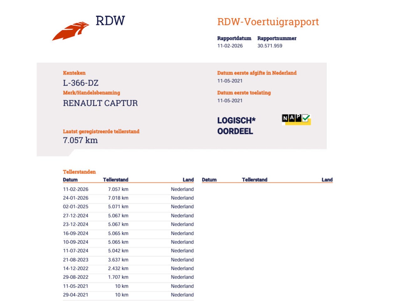| Kilometerstand | 7.057 km |