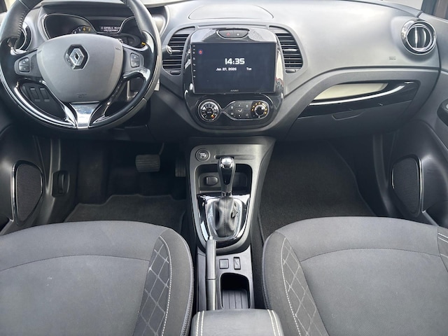 Kom maar, kom maar, kom maar... ho! Prettig hoor, zo'n achteruitrijcamera. Dankzij automatische airconditioning is het interieur behaaglijk warm of verfrissend koel. Natuurlijk is een complete auto als deze ook voorzien van sensoren die de omgeving in de gaten houden. Deze Renault heeft niet alleen een automatisch inschakelbare verlichting aan boord, maar ook een regensensor. Een heerlijke egale snelheid? Even de cruise control inschakelen! Geen sleutel of afstandsbediening meer nodig om deze Renault Captur te ontgrendelen. De sloten gaan vanzelf open als u dichtbij komt, via de sensor van de keyless entry. Ook navigatiesysteem, DAB ontvangst, lederen stuur, isofix-aansluiting, centrale deurvergrendeling met afstandsbediening en boordcomputer zijn aan boord.