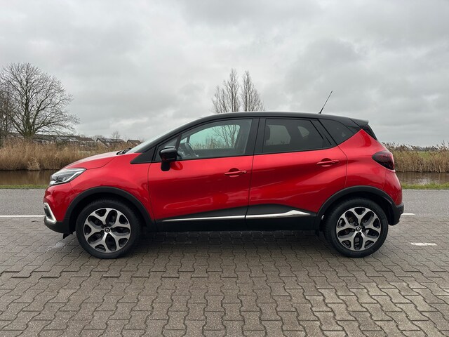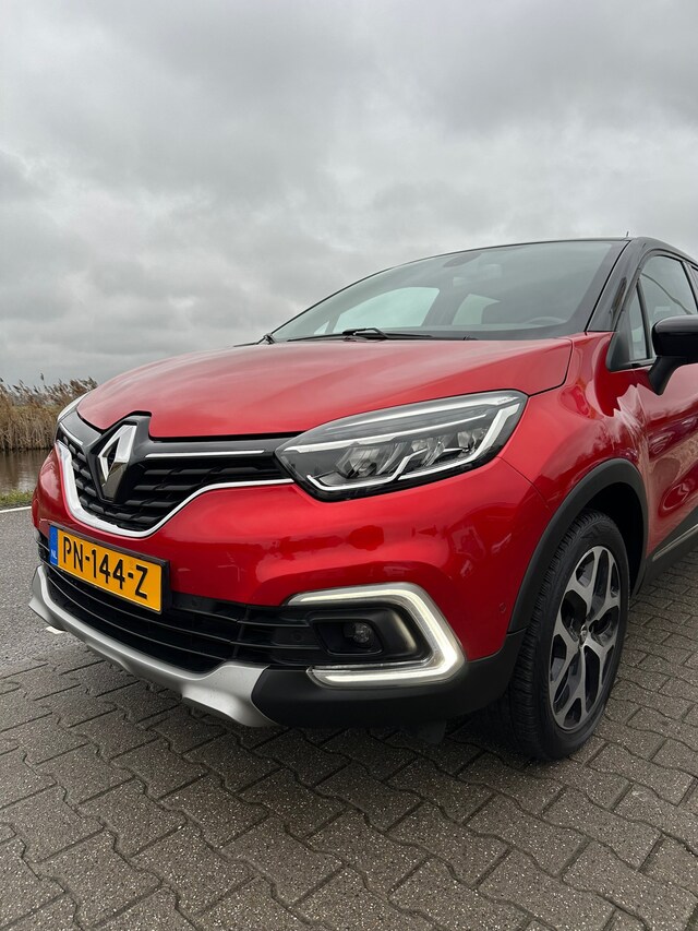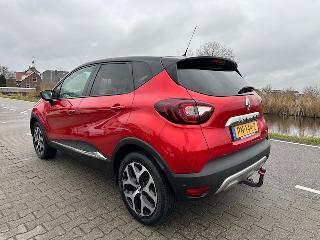 Renault Captur voorzien van een trekhaak, lederen bekleding met stoelverwarming, achteruitrijcamera, bluetooth, cruisecontrol en lichtmetalen velgen.