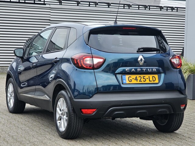 Leuke Renault Captur in de mooie kleur Bleu Ocean, onder meer 16 inch lichtmetalen velgen, LED-dagrijverlichting, extra getint glas, in delen neerklapbare achterbank, LED-achterlichten en snelheidsafhankelijke stuurbekrachtiging zijn onderdeel van de uitrusting.