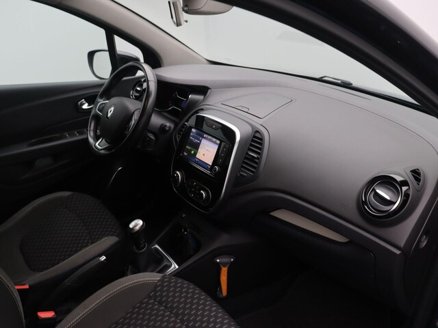 Een prachtige auto met een hoge instap, dat is de Renault Captur! De stoere kunststofranden, het grote merkembleem en de koplampunits geven hem een Franse flair. De glimmende, de zwarte kunststofdelen aan de zijkanten van de koets doet erg chique aan. De hoogwaardige ‘look’ blijft ook in het interieur overeind. Voorin zit je goed op de lekkere comfortabele stoelen en ook achterin kunnen twee volwassenen erg goed zitten. De kofferruimte lijkt in eerste instantie niet heel ruim, maar schijn bedriegt! Na het verwijderen van de dubbele bodem ontstaat er toch wel een forse bak. Daarnaast kun je de kofferbakruimte vergroten door de achterbank 16 centimeter naar voren te schuiven. Deze Captur is o.a. voorzien van navigatie, climate control, cruise control, parkeersensoren achter, Lichtmetaal, Trekhaak, etc. Meerprijs optioneel afleverpakket inclusief 12 maanden Bovag garantie, volledige servicebeurt waarbij de auto op 88 punten wordt gecontroleerd en reiniging van de auto is eur. 995,-. Geadverteerde prijs op ViaBovag.nl is inclusief afleverpakket.