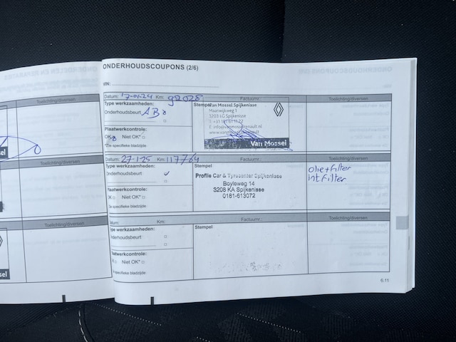 Onderhoudsboekjes: Aanwezig