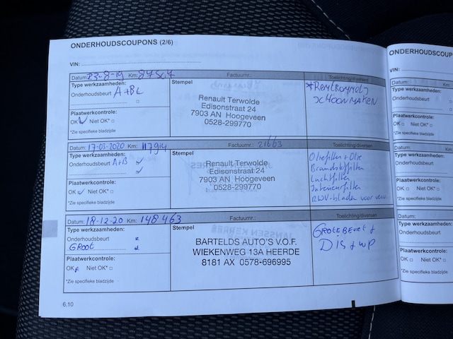Onderhoudsboekjes: Aanwezig
