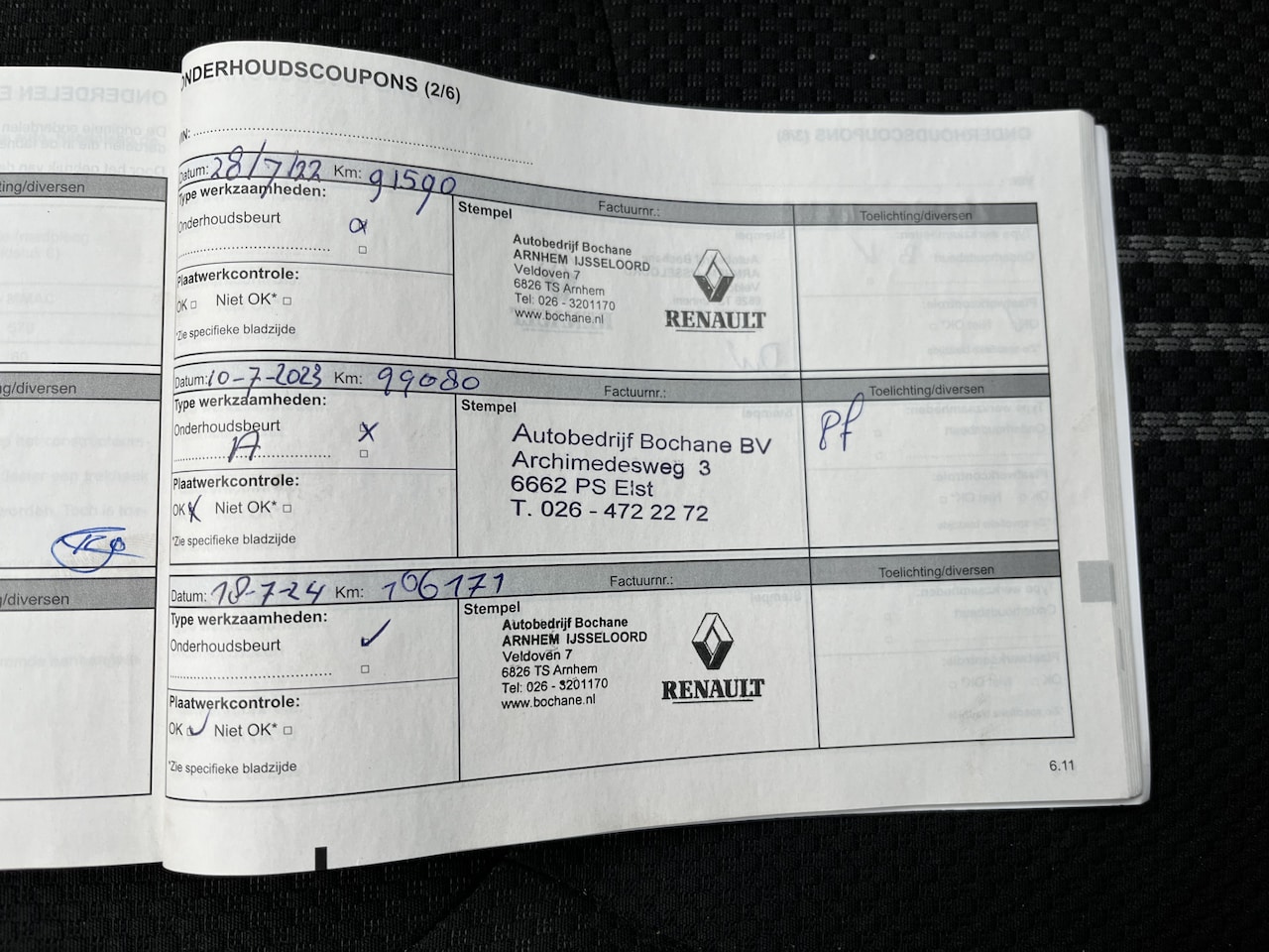 | APK | Bij aflevering |