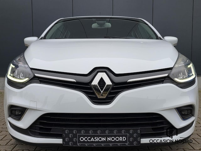 Prachtige Renault Clio Intens 2017 uitvoering uit maart 2017 met slechts 94.839KM op de teller, uitgevoerd in de stijlvolle en frisse kleur "Blanc Glacier". Dit betreft absoluut géén standaard Clio, maar de luxe en onderscheidende "Intens" uitvoering met een hoogwaardige afwerking en een rijkere uitrusting dan de gemiddelde uitvoering. Deze zeer nette en uiterst zuinige benzineauto is voorzien van een groot aantal luxe opties. Denk hierbij aan: airconditioning, stoelverwarming, cruisecontrol, navigatiesysteem, keyless entry&go, touchscreen, parkeersensoren, automatisch dimmende binnenspiegel, getinte achterruiten, bluetooth-audio en telefonie, multifunctioneel stuurwiel, full LED koplampen, LED dagrijverlichting, regensensoren, lichtsensoren, snelheidslimiter, lichtmetalen velgen, halflederen bekleding, isofix en ga zo maar door.