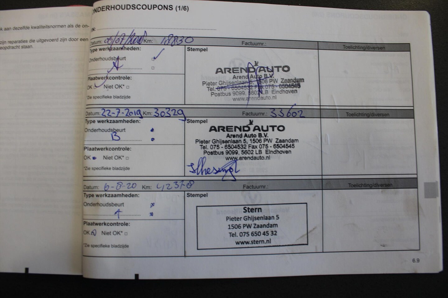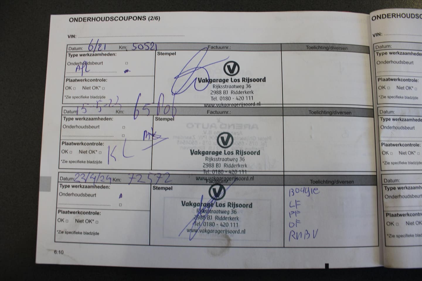 | APK | Bij aflevering |