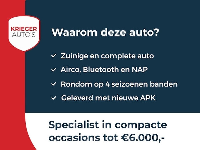 Voorzien van o.a.: Airco, Bluetooth carkit + muziek streamen, All seasonbanden en NAP.