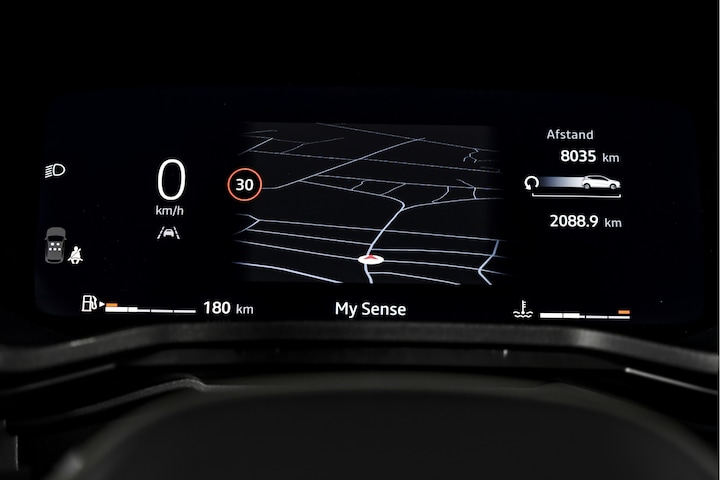 Binnenin valt direct het volledig digitaal instrumentenpaneel groot op, dat overzichtelijk alle rijinformatie weergeeft. De cruise control adaptief zorgt voor ontspannen rijden, ook op langere trajecten. In de koude maanden biedt het verwarmd stuur samen met de voorstoelen verwarmd extra comfort.