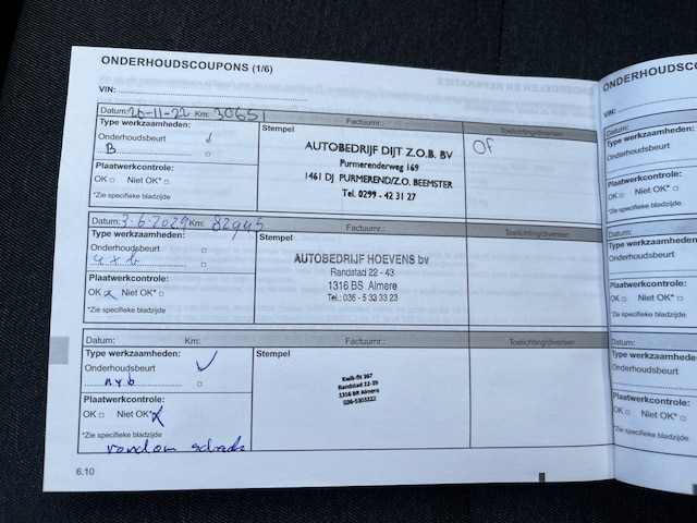 Onderhoudsboekjes: Aanwezig