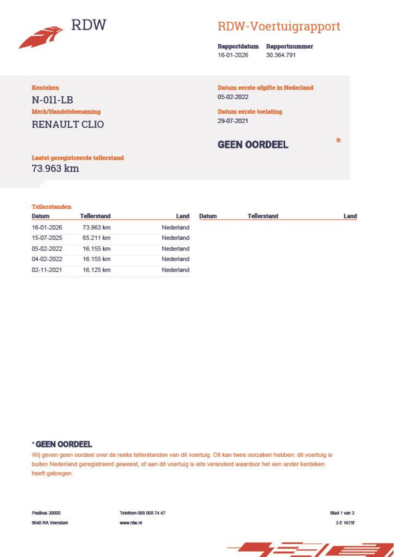 | Kilometerstand | 73.963 km |