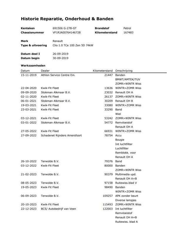 - Onderhoudshistorie aanwezig: Ja