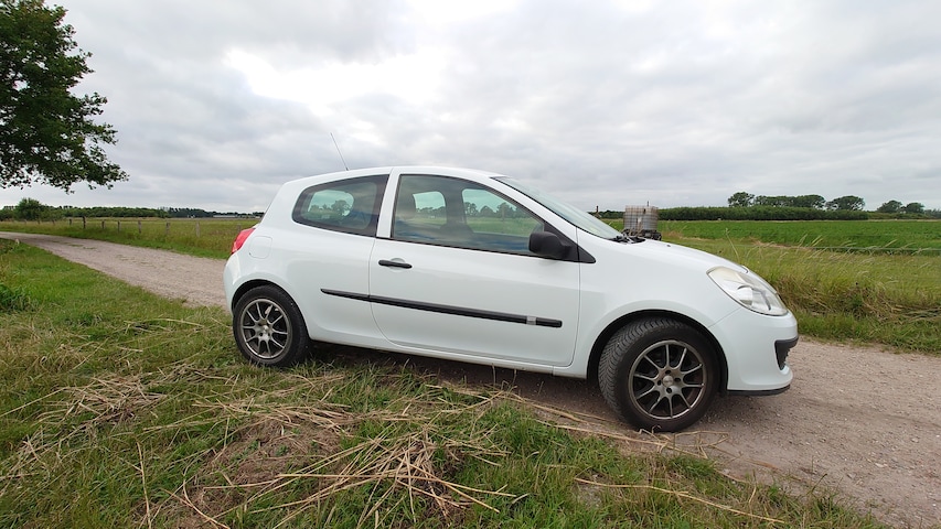 Renault Clio, wit, uit 2008, kan nog een ronde mee