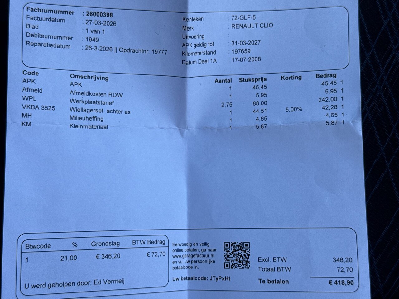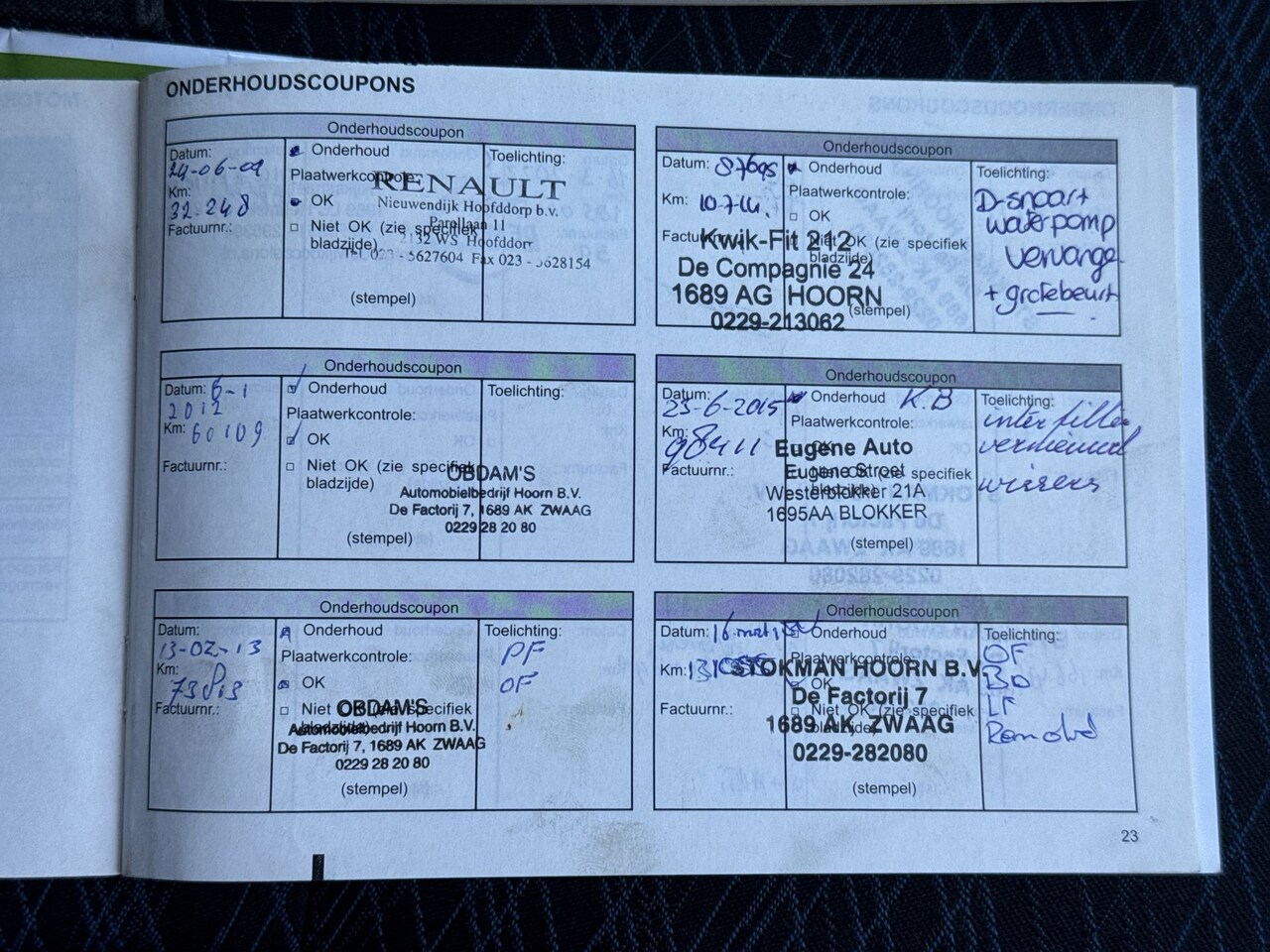 | APK | Bij aflevering |