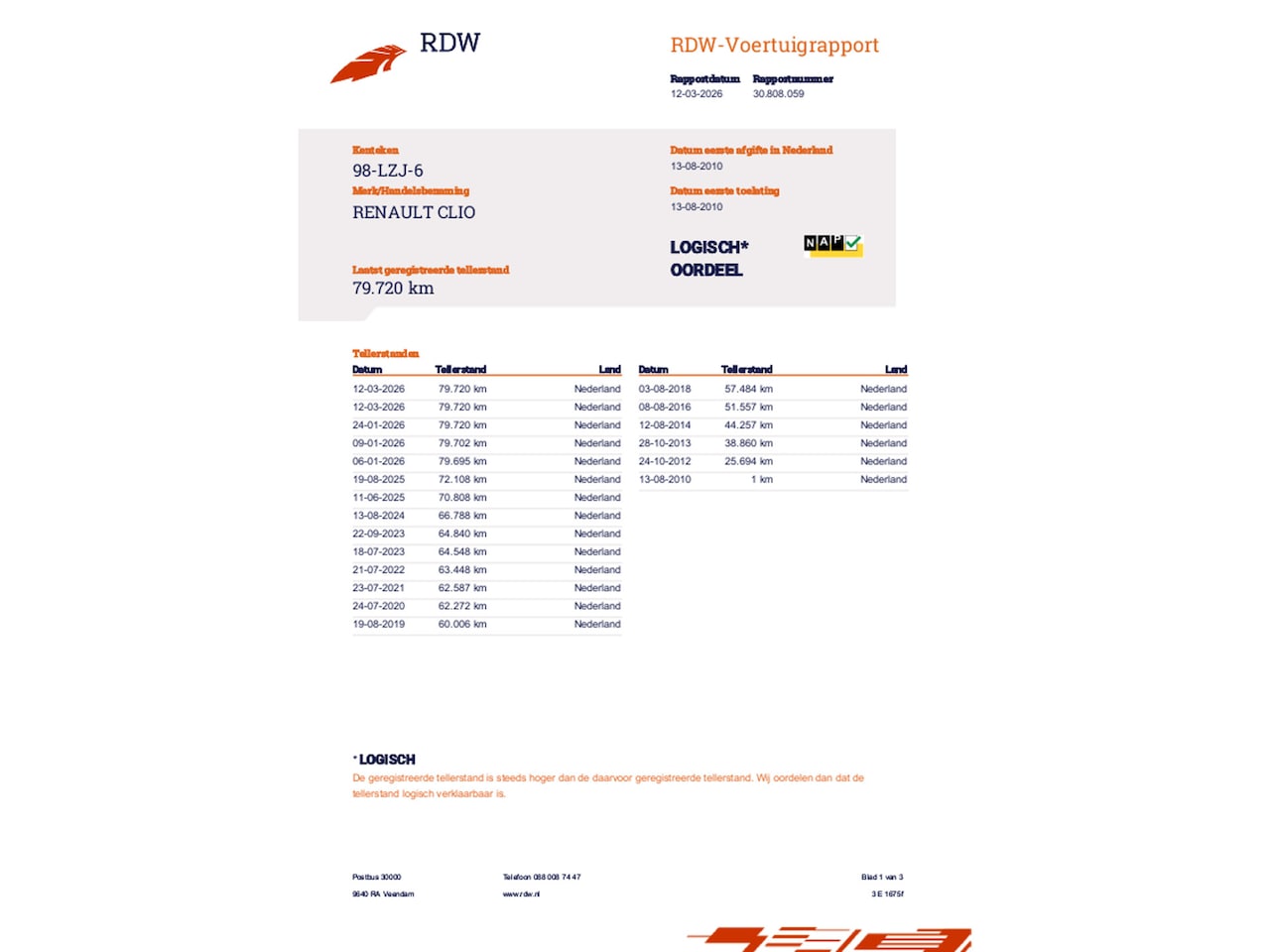 | Kilometerstand | 79.720 km |