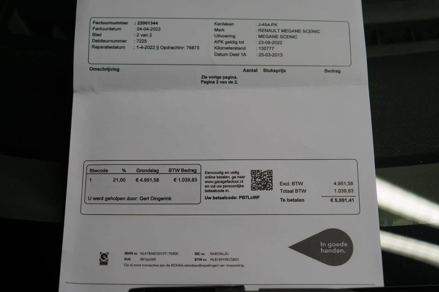 | APK | Bij aflevering |