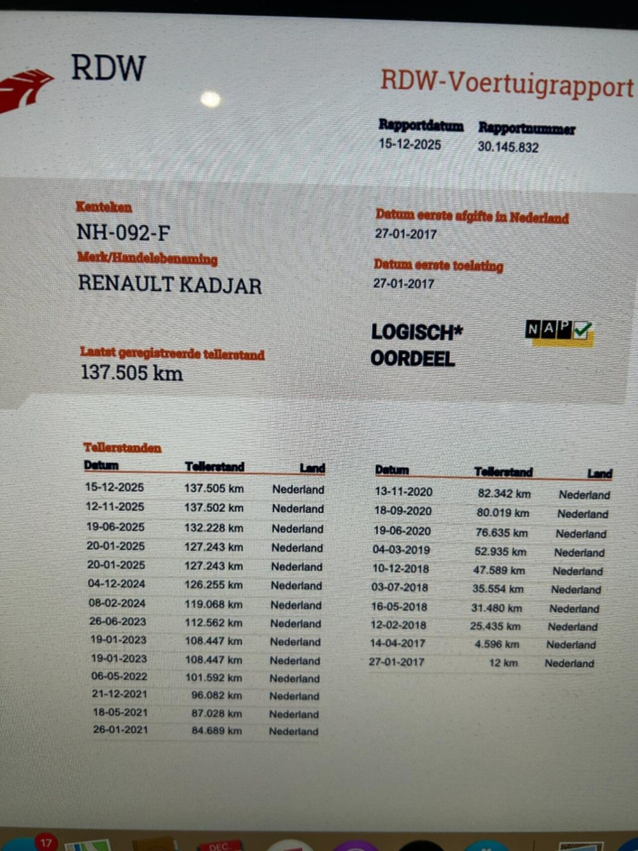 | Kilometerstand | 137.505 km |