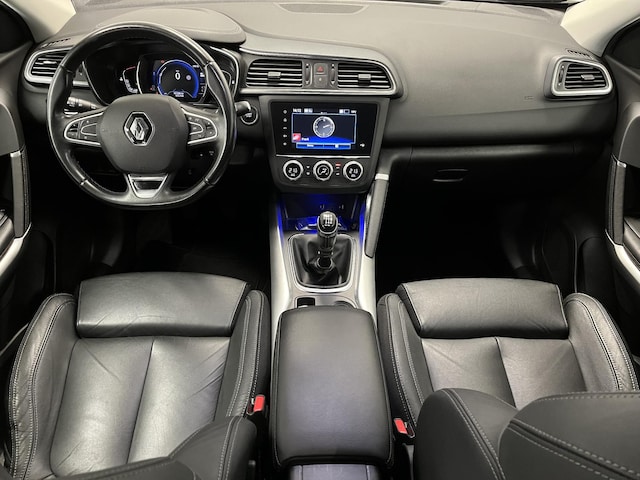 De tijd dat Franse auto's alléén maar mooi waren, ligt al heel lang achter ons. Subliem rijgedrag, innovatieve extra's en een vriendelijke prijs zijn inmiddels standaard. Hij heeft een benzinemotor en een handgeschakelde zesversnellingsbak. Deze Renault Kadjar is luxe afgewerkt. Kijk maar naar het lederen interieur! In de verwarmbare voorstoelen zitten is elke keer een welkom gevoel. Bij de uitrusting van deze Renault horen onder meer 19 inch lichtmetalen velgen, LED koplampen, extra getint glas, in delen neerklapbare achterbank, LED-achterlichten en verstelbare lendensteunen.