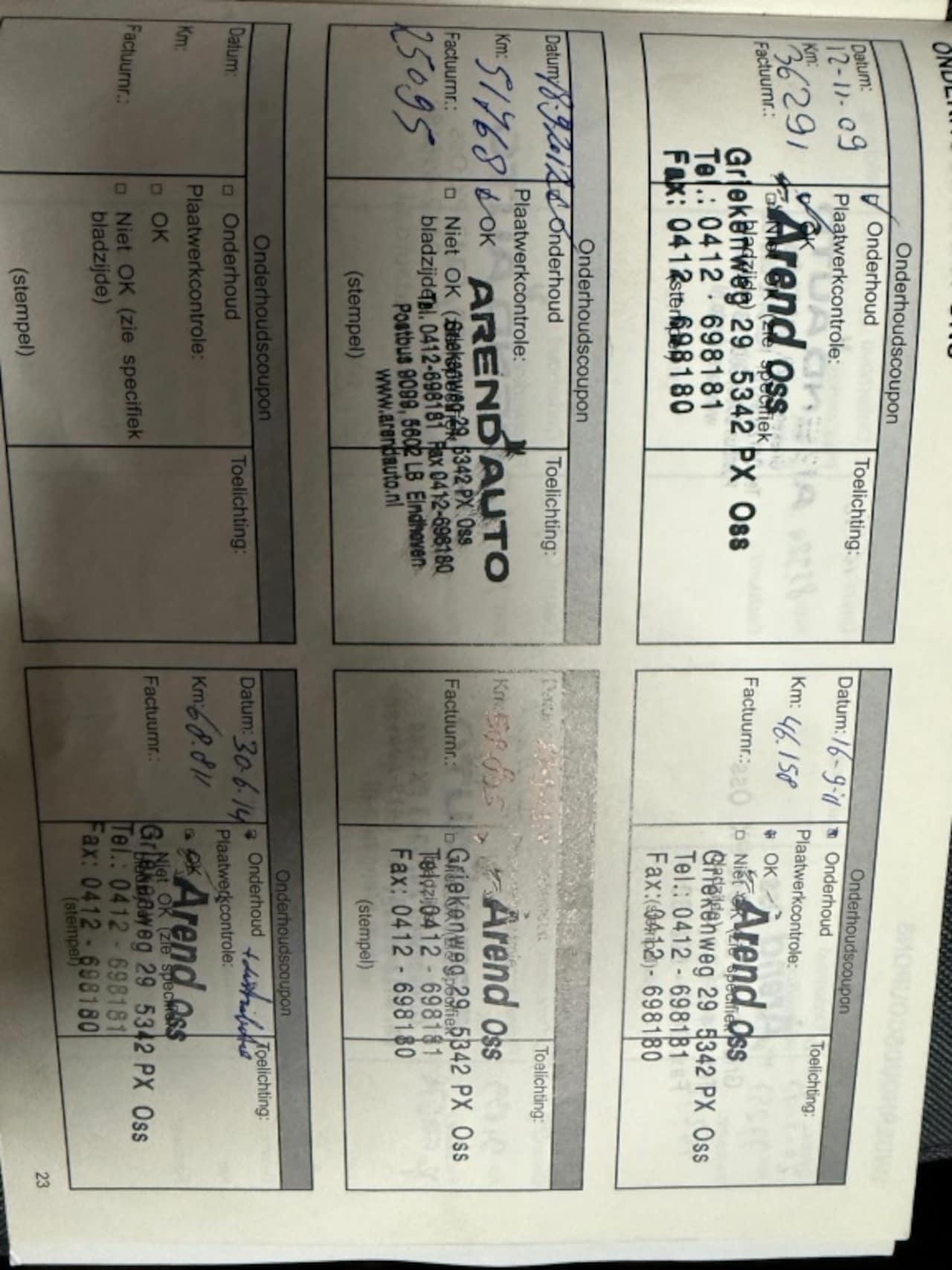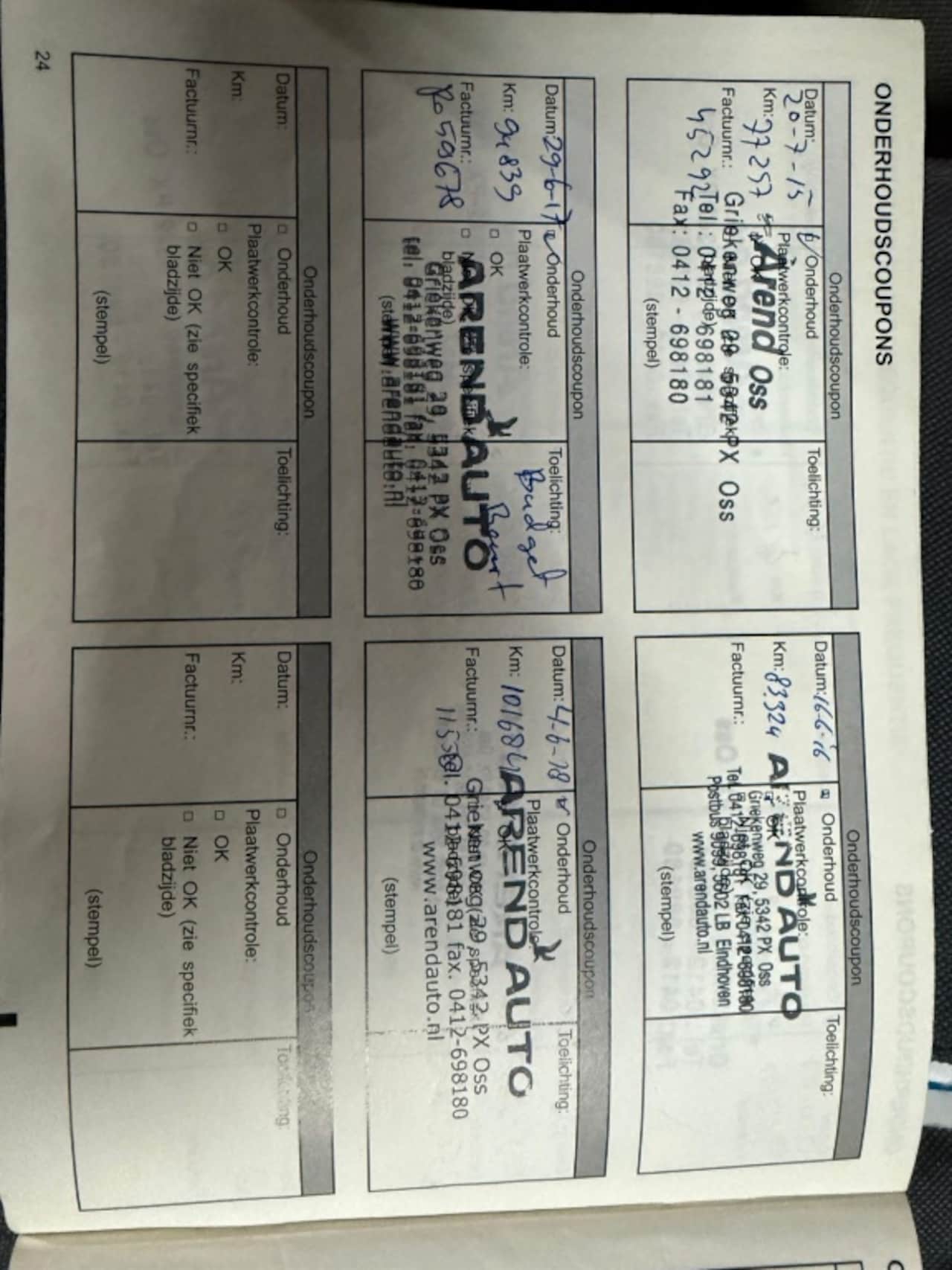 | APK | Bij aflevering |