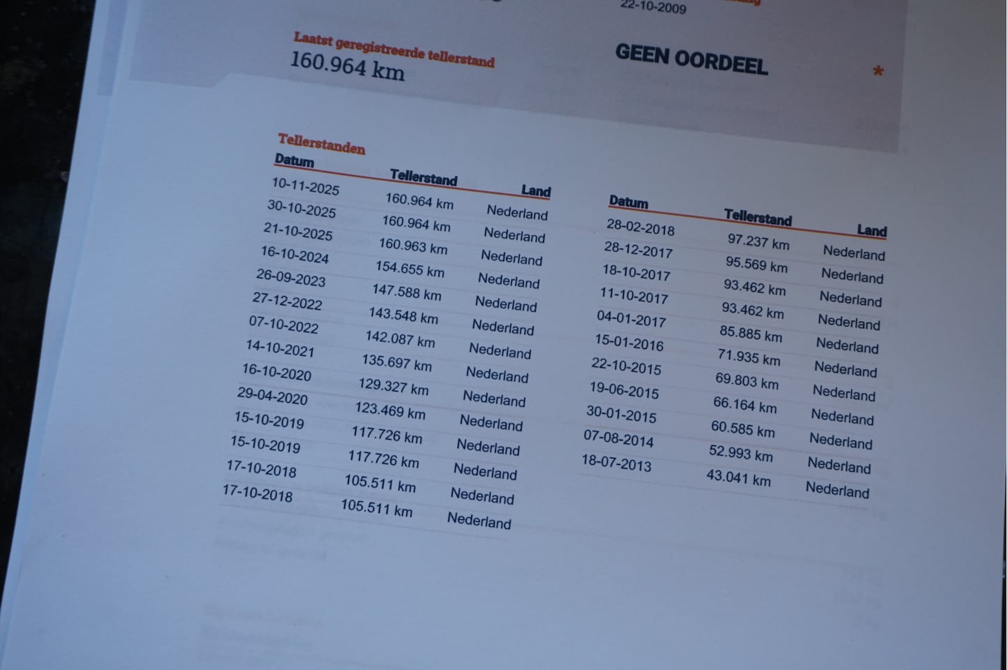 | Kilometerstand | 160.964 km |